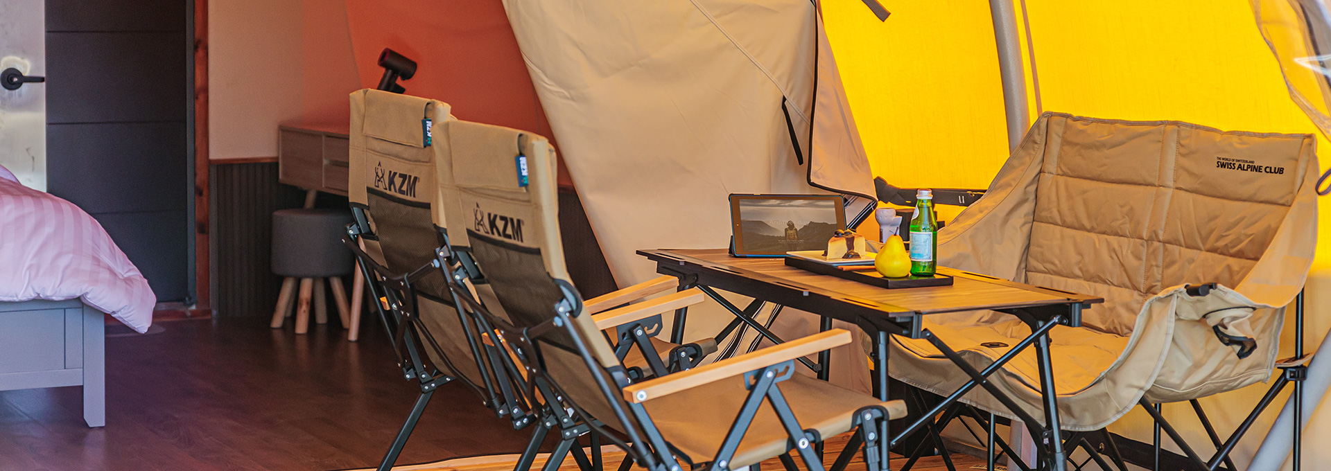 In a clean, cozy cabin.